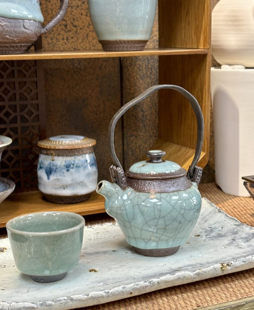 陳麗寬淡青小提梁壺