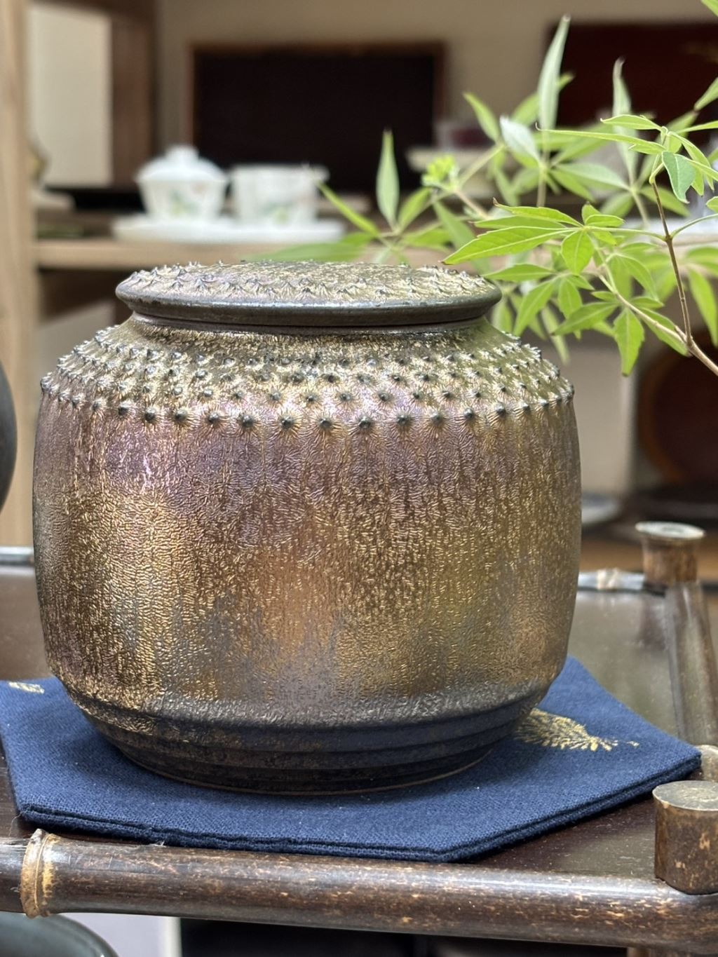 康嘉良墨金陶茶罐-霰紋半斤